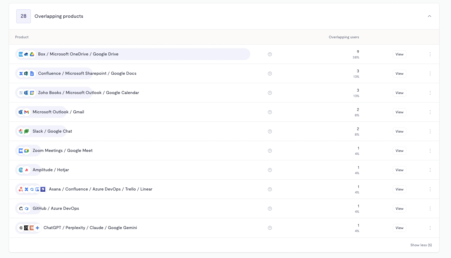 Overlapping SaaS products are one of the most common and most expensive forms of SaaS sprawl.